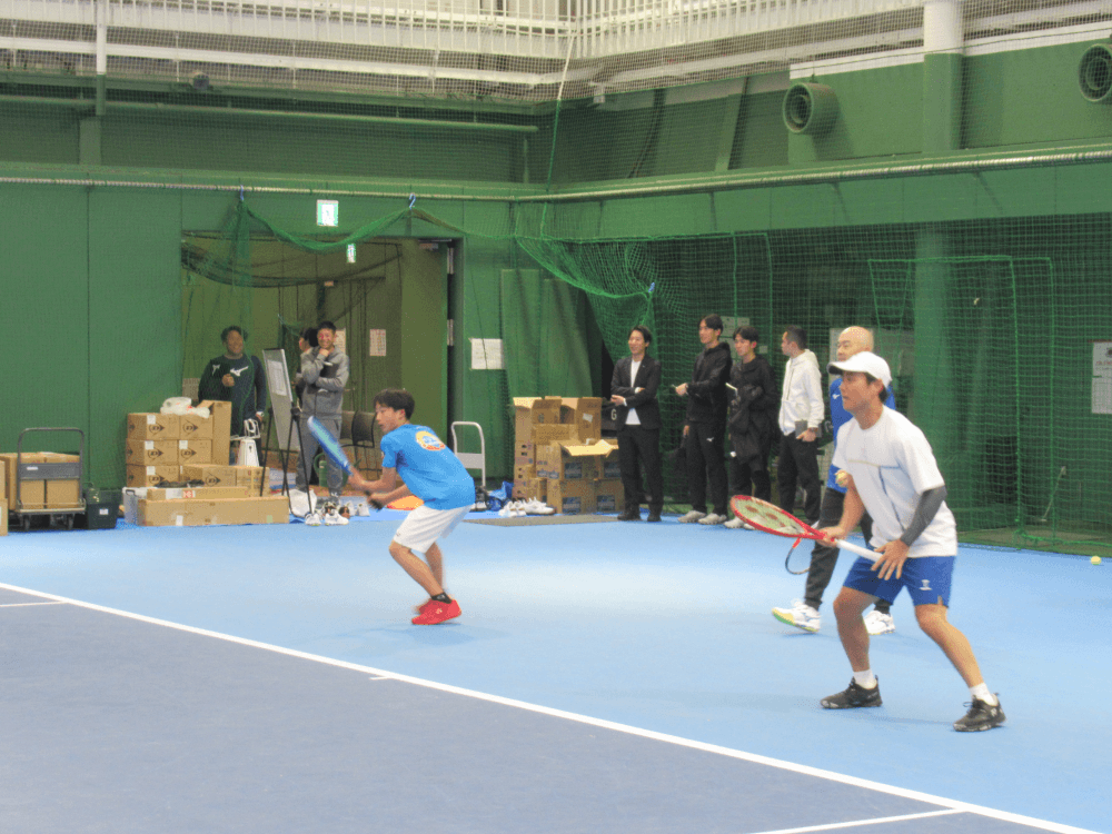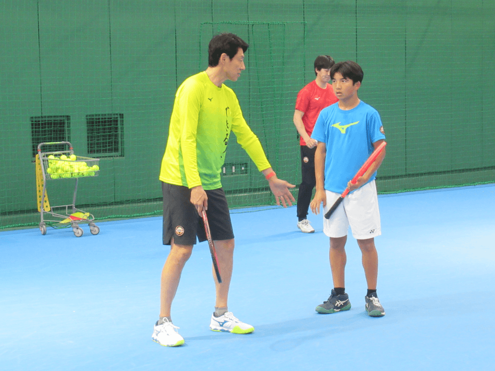 調整中の西岡良仁選手が選手の練習相手を務める